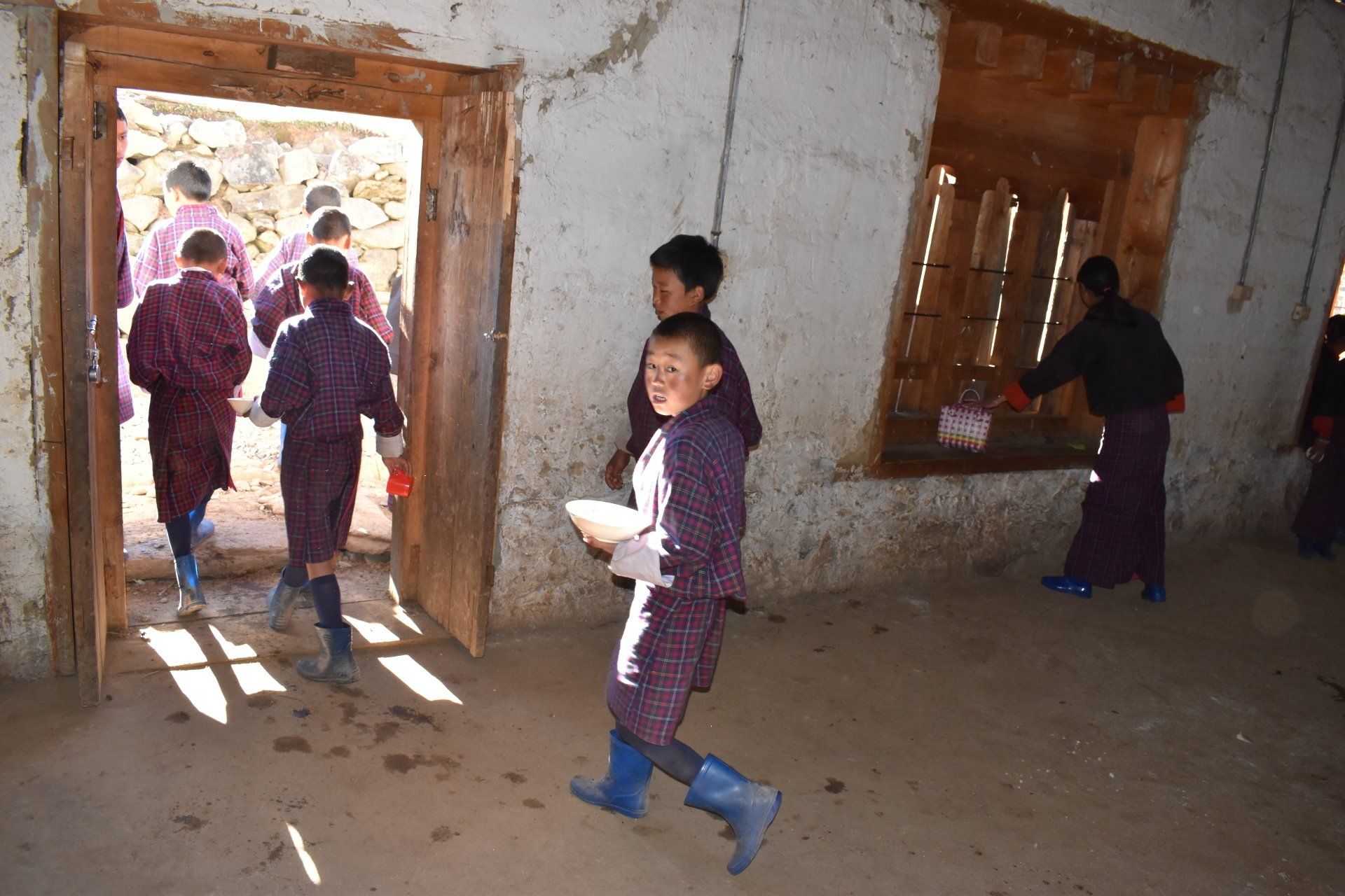 On the way to morning assembly, after school breakfast - Gangtey