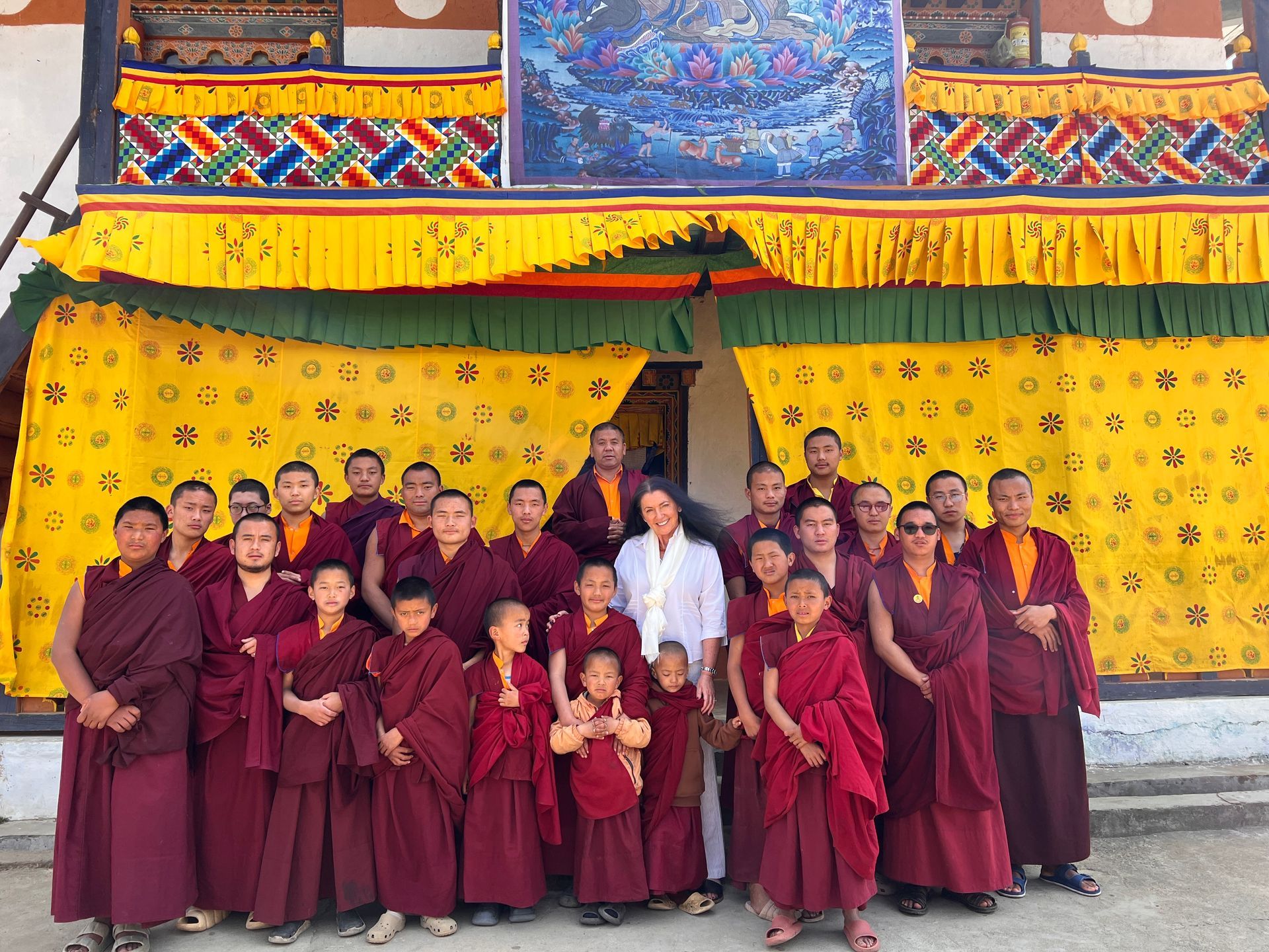 Our day at Pelri Pema Choling Monastery: During 2025, new and existing sponsors continued to support their nominated children at primary and secondary schools across Bhutan. Along with Martin and myself, many people also get involved with sponsoring young monks at The Pelri Pema Choling Monastery in Paro. Each time we visit Bhutan, we spend a day there and this year was no different. My companions early summer were friends Mr Leki Dorji D who is an amazing teacher and our driver on the day, as well as Ms Ugyen Lhamo, previous UK student who always helps me with Hope 108. She came armed with drinks and snacks for all the monks. The journey to get there was up an extremely windy, bumpy dirt track. Any discomfort is immediately forgotten once we reach the monastery and see all the smiling monks, in red and orange robes, lined up to greet us. After photos outside, we were ushered inside the cool, calm interior and treated as special guests of honour. Tea and sweet rice is brought to us, followed by fresh fruit and other delicacies. Meanwhile the monks perform a wellbeing ritual for us with prayers, music and dancing. Even the youngest, smallest monks aged 4, join in by blowing conch shells. The biggest surprise came when Kuengo, the monk I sponsor, performed a special masked dance which he had learnt specially. It was amazing. After speeches, perfectly translated both ways by Leki, Lama did our astrology readings which were fascinating. We finished the day walking around outside and checking progress on building work whilst chatting to some of the monks in English and Dzongka. As the sun started to set, we also set off back down the bumpy road and away from the monastery; with so many happy memories which will last until we return the next time. A day in the life of a monk: For anyone who was wondering, Kuengo and the other monks spend their days at the monastery exactly like this: 6am- Morning prayers 7-8am- Morning Meeting 8am- Breakfast of rice with suja 9-11am- Lessons held within the monastery 12pm- Lunch break with rice and vegetable curry 1:30-3pm- Prayers 3-3:30pm- Tea break 3:30-5- Lessons 5-6pm- Debate is held 6:30pm- Dinner of rice and vegetables 7:30-8:30pm- Prayers 9-10pm- Homework 10pm- Bedtime meditation Ability Bhutan Society: Hope 108 is mentioned as an international partner in the latest annual report from Ability Bhutan Society (ABS) We have previously donated items from a swimming pool to exercise kit to help improve mobility of these children who are unable to have a standard education. Hope 108 has sponsored many children with severe disabilities at ABS. This enables them to have additional bespoke learning they need, even from home and to ensure we support their families too. Thank you! A big thank you to all the Hope 108 sponsors who sent me letters and packages to bring to Bhutan for their nominated children. The children were delighted to receive gifts from their sponsors and practiced their English by writing thank you notes of appreciation.